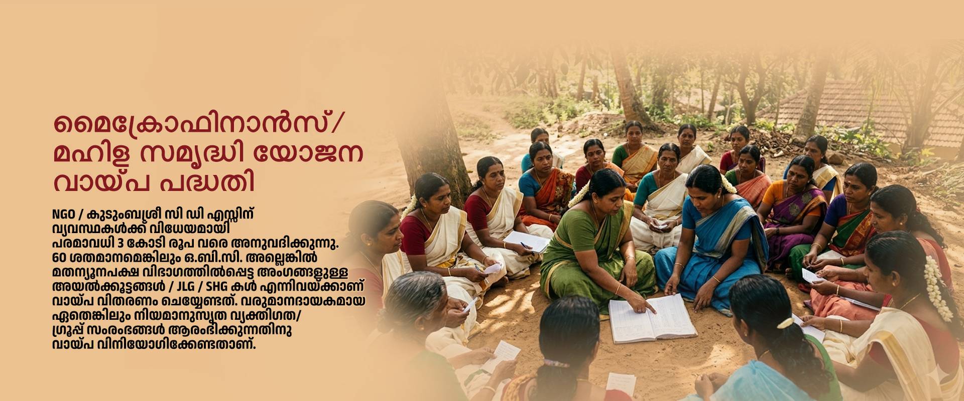 Kerala State Backward Classes Development Corporation Ltd (KSBCDC) is a Private Limited Company fully owned by the Government of Kerala, registered under the Companies Act 1956 on 28-02-1995 with its Registered Office at Thiruvananthapuram. The Corporation is also a Non-Banking Finance Company registered with The Reserve Bank of India in the Non-Deposit taking Systemically Important category. The Corporation has offices in all the 14 Districts of the State and 20 Taluk level Sub District Offices. Our Mission is "Freedom from Poverty and Backwardness" of the targeted communities in the State of Kerala.
